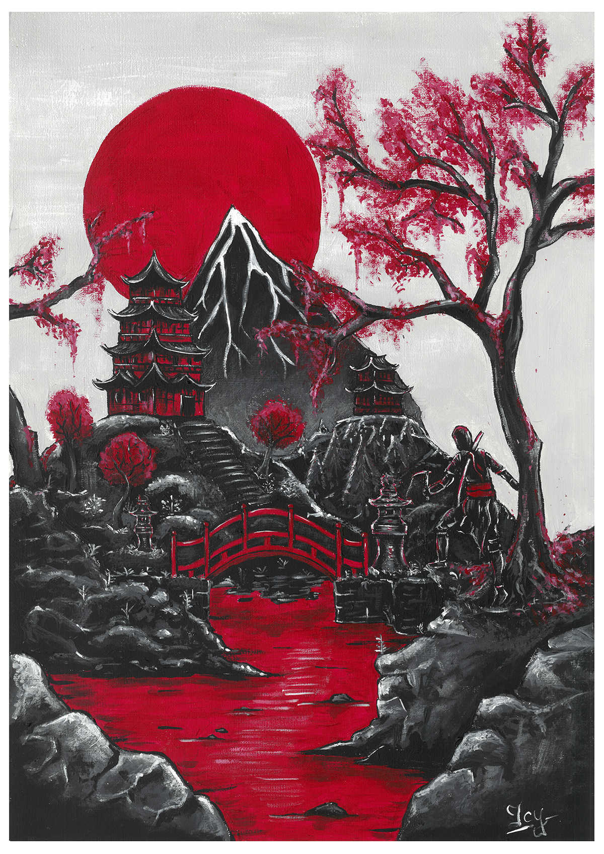 High quality art print of my acrylic painting, Naoe from Assassin's Creed Shadows. Printed on 300 g/m² acid free textured fine art paper, made of 100% cotton with matt coating. The paper is free of white makers and also complies with ISO 9706, which means that the paper can be stored for at least 100 years. It has a strong watercolor structured surface and is explicitly suitable for fine-art reproduction.