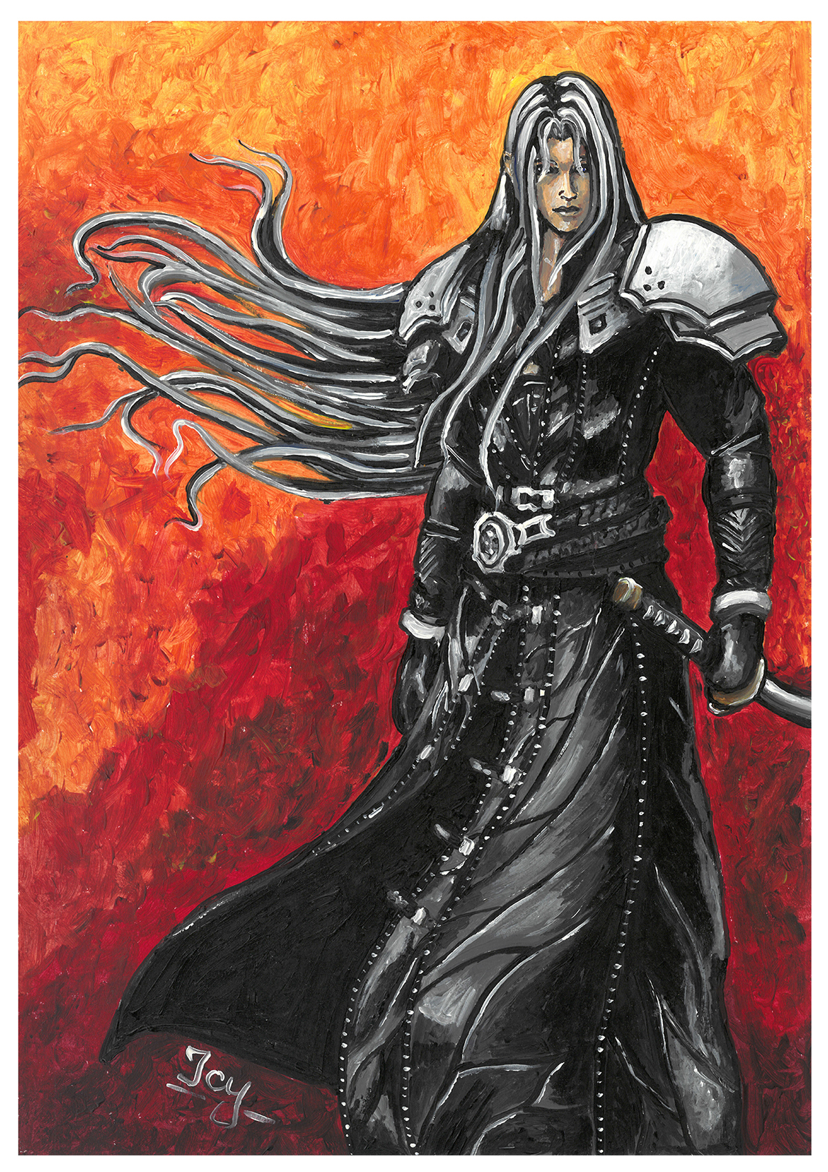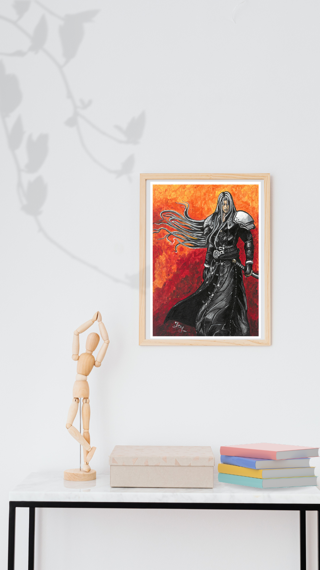 High quality art print of my acrylic painting, Sephiroth from FinalFantasy 7. Printed on 300 g/m² acid free textured fine art paper, made of 100% cotton with matt coating. The paper is free of white makers and also complies with ISO 9706, which means that the paper can be stored for at least 100 years. It has a strong watercolor structured surface and is explicitly suitable for fine-art reproduction.