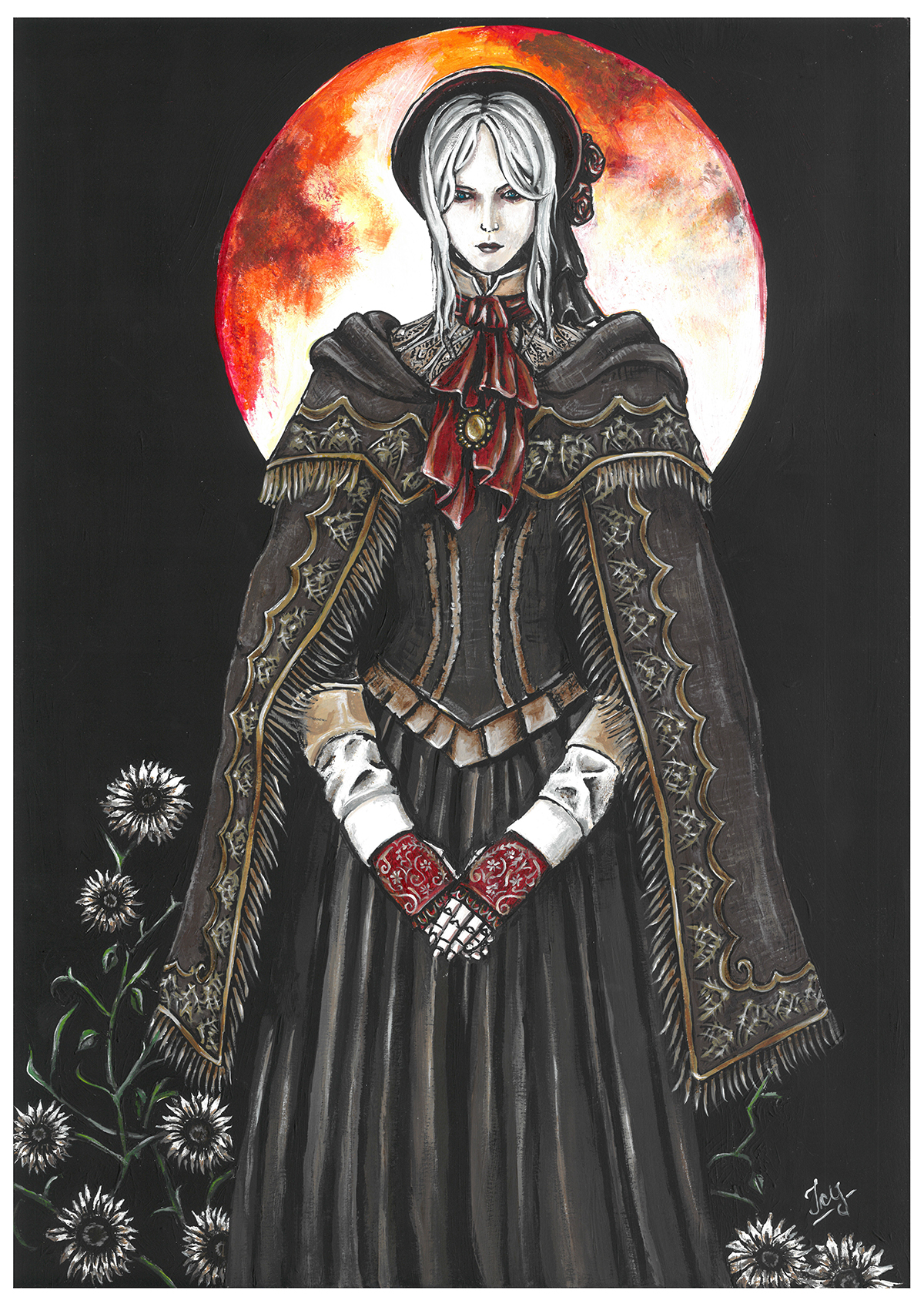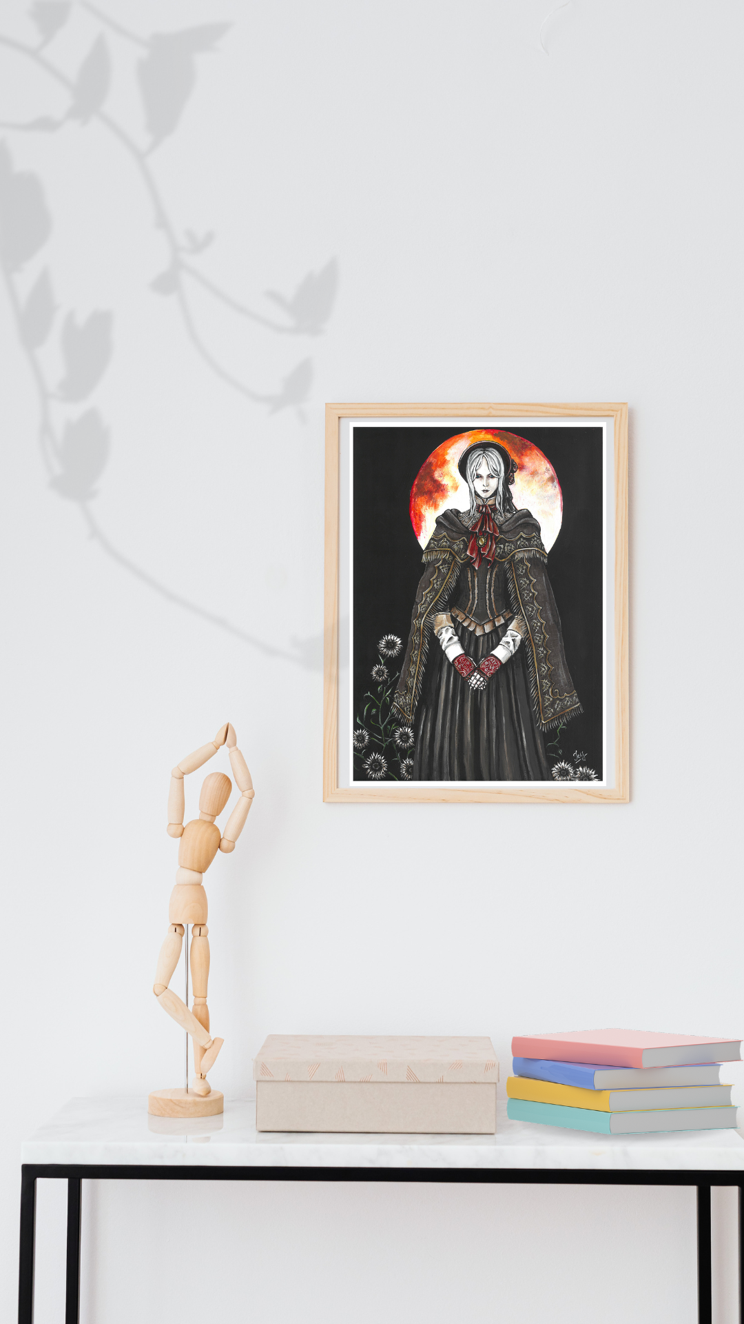 High quality art print of my acrylic painting, The Doll from Bloodborne. Printed on 300 g/m² acid free textured fine art paper, made of 100% cotton with matt coating. The paper is free of white makers and also complies with ISO 9706, which means that the paper can be stored for at least 100 years. It has a strong watercolor structured surface and is explicitly suitable for fine-art reproduction.