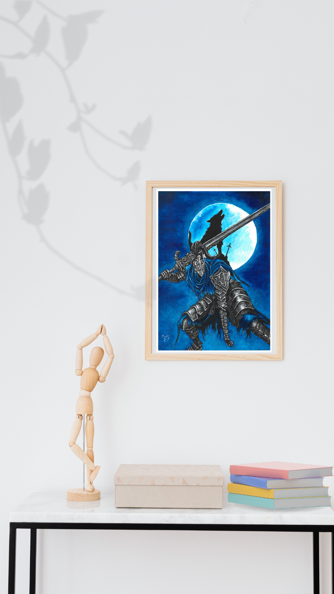 High quality art print of my acrylic painting, Artorias The Abysswalker from Dark Souls. Printed on 300 g/m² acid free textured fine art paper, made of 100% cotton with matt coating. The paper is free of white makers and also complies with ISO 9706, which means that the paper can be stored for at least 100 years. It has a strong watercolor structured surface and is explicitly suitable for fine-art reproduction.