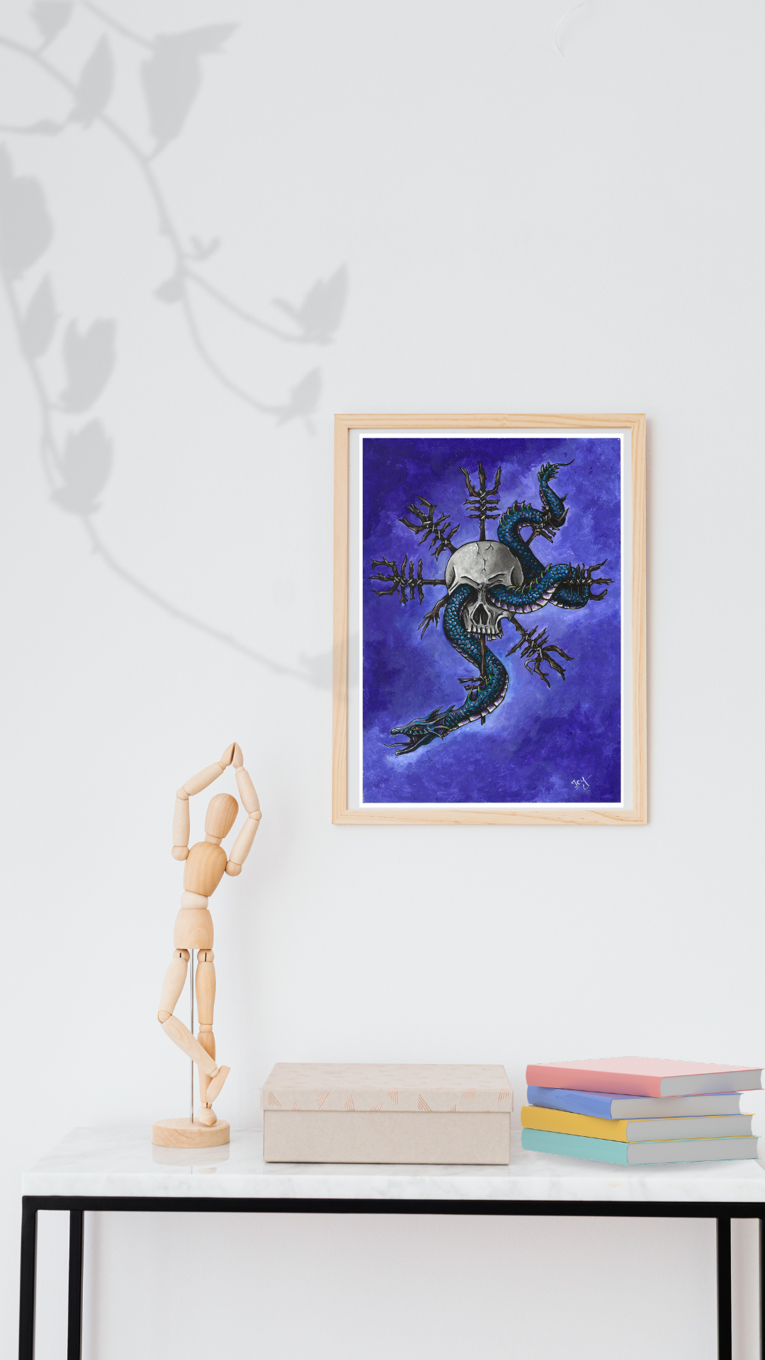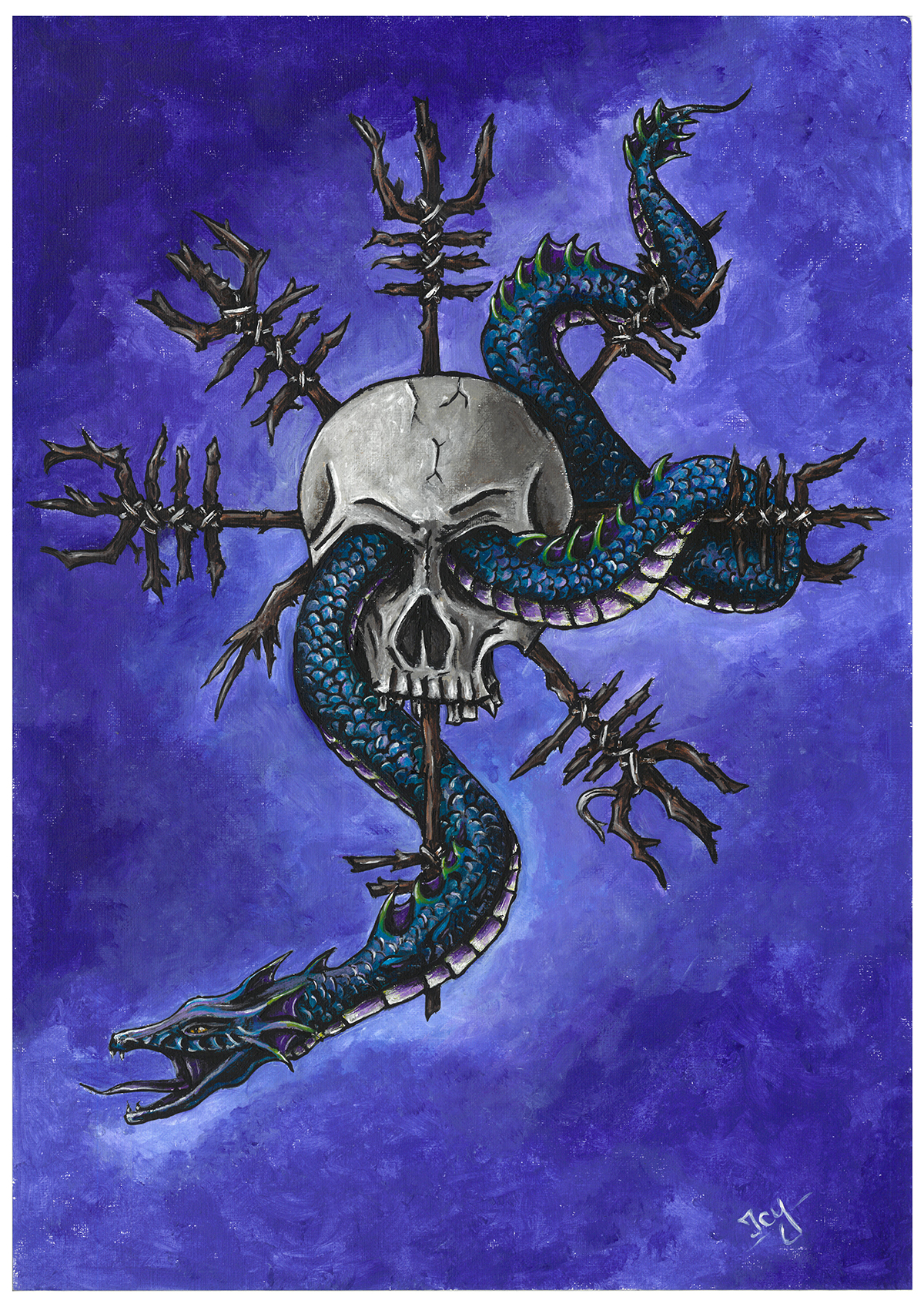 High quality art print of my original acrylic painting, Skull and Serpent, inspired by Nordic mythology. Printed on 300 g/m² acid free textured fine art paper, made of 100% cotton with matt coating. The paper is free of white makers and also complies with ISO 9706, which means that the paper can be stored for at least 100 years. It has a strong watercolor structured surface and is explicitly suitable for fine-art reproduction.