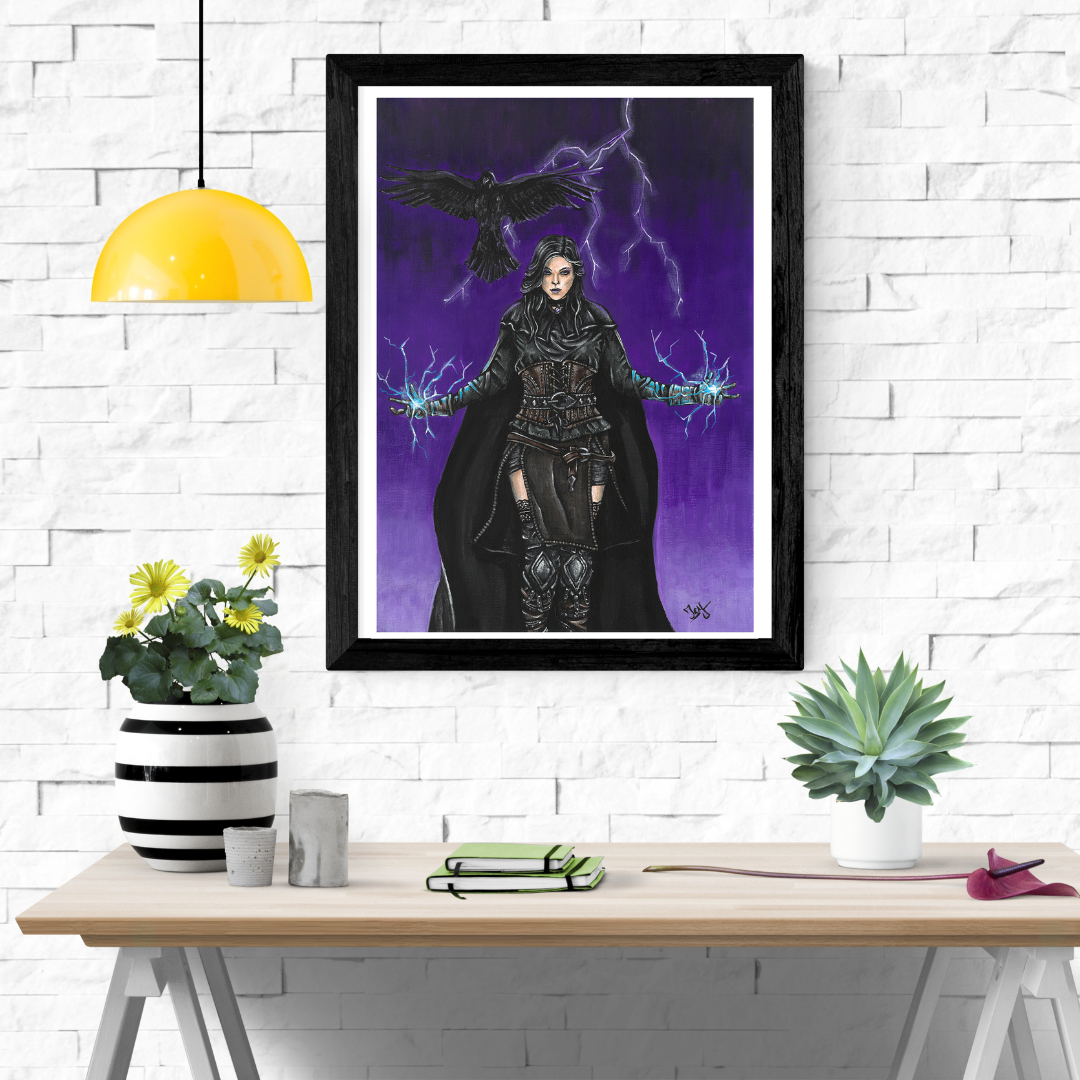 High quality art print of my acrylic painting, Yen from The Witcher 3 Wild Hunt. Printed on 300 g/m² acid free textured fine art paper, made of 100% cotton with matt coating. The paper is free of white makers and also complies with ISO 9706, which means that the paper can be stored for at least 100 years. It has a strong watercolor structured surface and is explicitly suitable for fine-art reproduction.