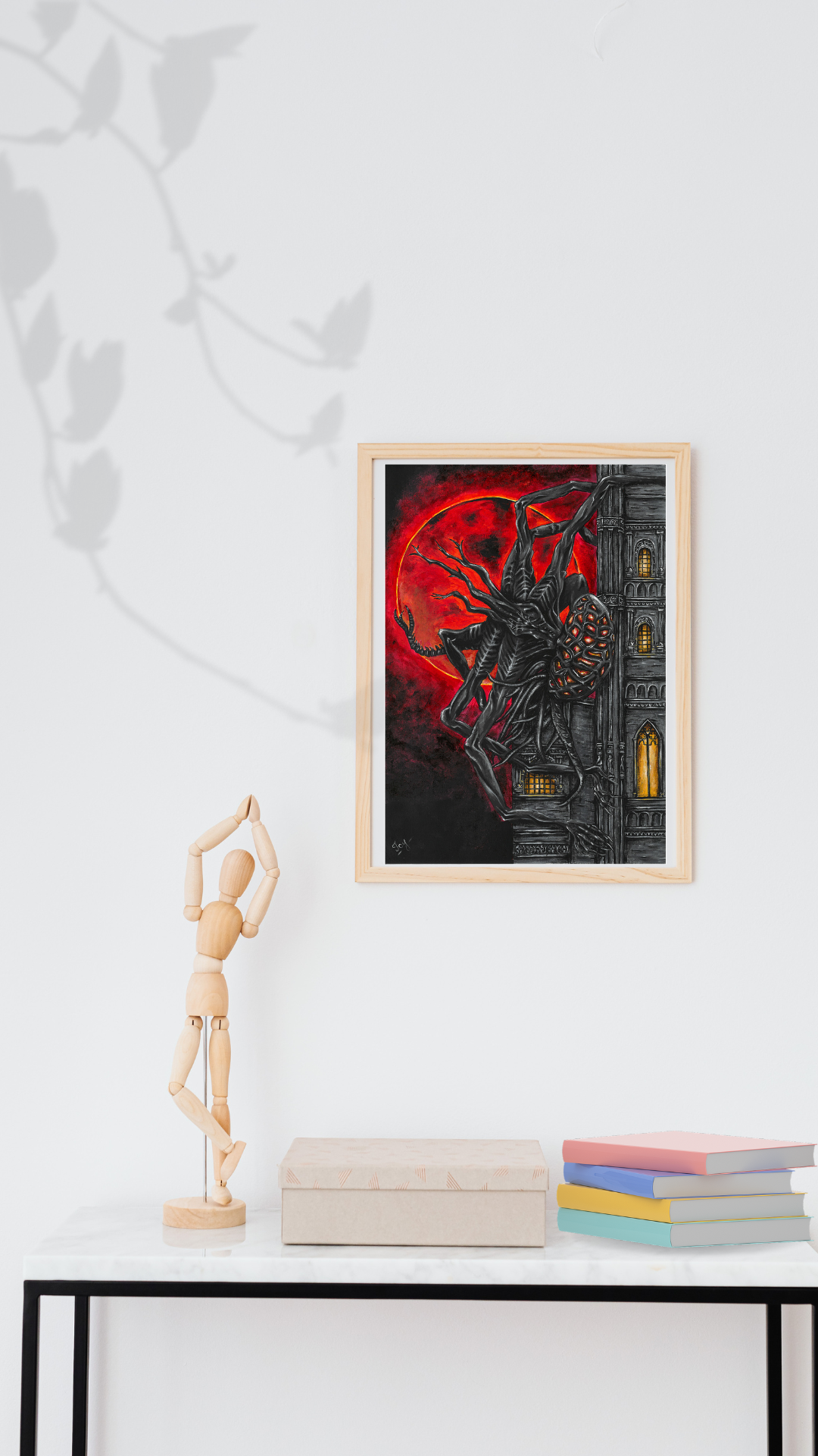 High quality print of my acrylic painting, Amygdala from Bloodborne. Printed on 300 g/m² acid free textured fine art paper, made of 100% cotton with matt coating. The paper is free of white makers and also complies with ISO 9706, which means that the paper can be stored for at least 100 years. It has a strong watercolor structured surface and is explicitly suitable for fine-art reproduction.